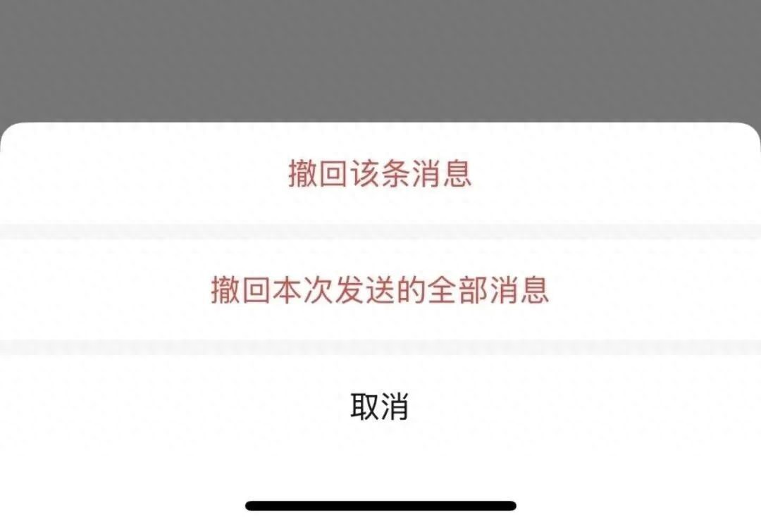 現在,微信可以一次性撤回本次發送的全部消息(包括多選轉發、批量發送的圖片視頻和文件)。以前,一條條撤回,匆匆忙忙連滾帶爬;現在,一次性撤回,從從容容游刃有余。