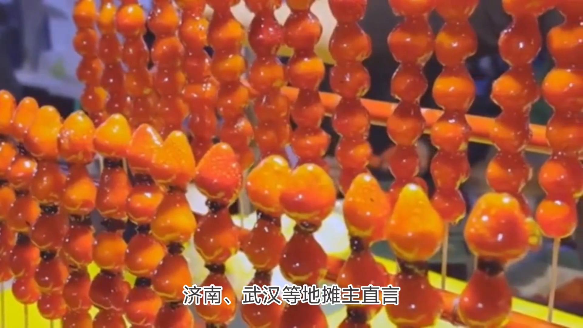 濟南、武漢等地攤主直言,20元一串的奶皮子糖葫蘆原料成本占比已超60%,每串利潤僅剩3元,若價格持續上漲只能考慮下架。