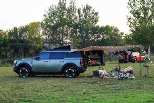 福特智趣烈馬車身長度達到了5025mm,軸距更是達到了2950mm,這樣的尺寸已經達到了7座車的水平,帶來的寬裕空間自然不言而喻。而497L的后備箱容積,搭配160L電動前備箱的“雙箱”設計,容納露營全套裝備的同時,還能放置很多美食與日常用品,家用綽綽有余。