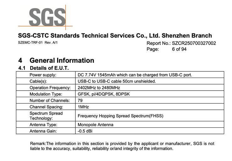 不過,文件并未明確指出其采用的藍牙版本。考慮到前代產品已支持 BLE 5.2 標準,新機是否會升級至更高版本的藍牙協議以進一步降低功耗或提升連接穩定性,目前仍是未知數。