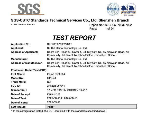 除電池外,FCC 文件還確認了 Osmo Pocket 4 將繼續支持低功耗藍牙(Bluetooth Low Energy, BLE)技術。這一功能對于連接手機 App、無線麥克風等外設至關重要。