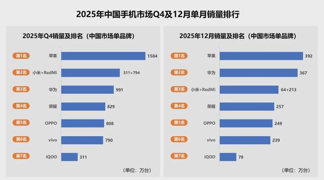 IDC發(fā)布的2025年Q4數(shù)據(jù)顯示,中國市場第四季度出貨量7578萬臺,同比微降0.8%,整體表現(xiàn)平穩(wěn)。華為強勢回歸并未打破市場均衡,反而推動國內(nèi)智能手機市場進入新的穩(wěn)態(tài)競爭階段。