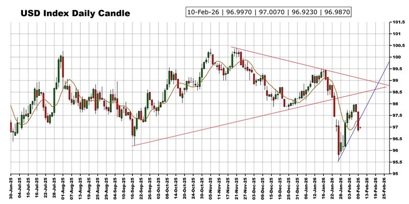 FX168財經報社(亞太)訊 周二(2月10日)亞市尾盤,美元指數位于96.90附近;現貨黃金價格位于5040美元/盎司左右。本交易日,投資者將聚焦美國零售銷售數據,預計將引發市場大行情。Kshitij咨詢服務團隊(Kshitij Consultancy Service)周二最新撰文,對黃金、美元指數、歐元/美元、歐元/日元、美元/日元、澳元/美元、英鎊/美元以及美元/人民幣后市走勢進行前瞻分析。